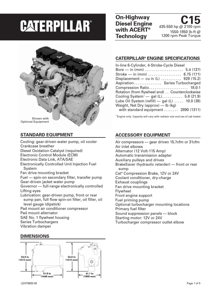Caterpillar C15 Engine Specs Pdf Horsepower Transmission Mechanics