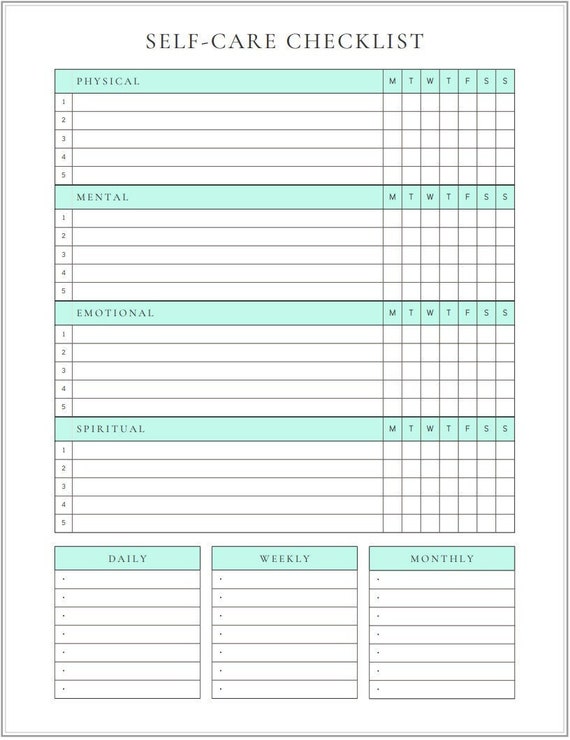 Simple Self Care Checklist Template Pdf Printable Etsy